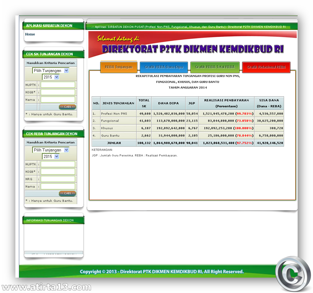 - Kemudian pada sisi kiri penggalan "CEK SK TUNJANGAN DEKON" anda isikan NUPTK anda pada penggalan NUPTK